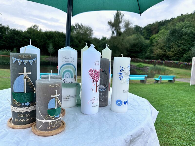 Richtig viel los war am Sonntag an der Badestelle in Barbis: Denn dort wurde wieder ein fröhliches, buntes Tauffest mit sieben Taufen gefeiert. Und es gab noch einen Geburtstag: An diesem Wochenende lud der Verein „Badespaß Barbis“ mit vielen Aktionen zu seinem zehnjährigen Bestehen ein. Gute Gründe zu feiern – und das Wetter hielt auch! Mit dabei waren Pastorin Vanessa Bethe und die Pastoren Simon Burger und Torsten Kahle, der Bläserchor und „LauterGitarren“ – und natürlich eine große Festgemeinde. Gemeinsam wurde gesungen, gebetet, der Glauben bekannt und die Tauffragen gestellt. Und die Badestelle Barbis bot eine ganz besondere, natürliche und eindrucksvolle Taufkulisse. Auch die Worte, die die Pastoren in ihrer Andacht fanden, trugen zu dieser Stimmung bei. Denn sie erzählten von ihren ganz persönlichen Taufsprüchen und ihren Bedeutungen. Der von Vanessa Bethe zum Beispiel war ziemlich lang – und vermutlich hätte sie sich einen anderen ausgesucht, wenn sie die Wahl gehabt hätte… Der von Torsten Kahle konnte auch nach längerer Recherche nicht herausgefunden werden – und doch hat ihn seine Taufe für das spätere Leben und seinen Beruf sehr geprägt. Und Simon Burger wurde mit etwa zehn Jahren gemeinsam mit seinen drei Geschwistern getauft. Sein Taufspruch lautete: „Tu deinen Mund auf für die Stummen und für die Sache aller, die verlassen sind.“ Ein Spruch, der für ihn an der ein oder anderen Stelle eine Rolle spielte. Und so wünschte er allen: „Gott begleitet mich in allen Höhen und Tiefen des Lebens. Dann wenn ich weine, dann wenn ich lache – und auch an den äußersten Enden der Welt. Ich hoffe, dass diejenigen, die heute getauft wurden, genau das in ihrem Leben immer wieder spüren werden.“