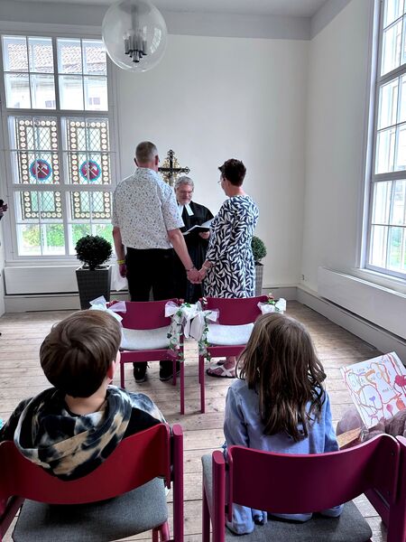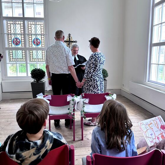 Die kleine Hochzeitsgemeinde sitzt in der Winterkirche in St. Andreasberg und erwartet das Brautpaar sehnsüchtig. Draußen herrscht graue Sprühregen-Stimmung, hier drinnen ist es feierlich-erwartungsvoll. Die Enkelkinder hibbeln auf ihren Stühlen hin und her. Wann kommen Oma und Opa denn? Endlich geht die Tür auf und das Lied „You are my Sunshine“ erklingt. Andächtig schreiten Bärbel und Thorsten durch den kleinen Raum, wechseln mit ihren Angehörigen rührige Blicke. Nach 31 Jahren Ehe geben sie einander heute noch einmal das Ja-Wort – vor Gott. Auf etwa 615 Höhenmetern. Denn die Pastor*innen Mirja Rohr, André Dittmann und Wolfgang Thon-Breuker haben am Sonntag die zweite "Trauung to go" in der Martinikirche im Oberharz angeboten – mit ganz unterschiedlichen Paaren, die sich spontan trauten – oder trauen ließen. Genau für Paare wie dieses ist das besondere Trauformat gedacht: Wenn eine kirchliche Hochzeit lange geplant war – aber plötzlich das Leben dazwischenkommt. Besondere Gründe und Umstände, die eine große Hochzeitsfeier unmöglich machen. „Wir wollen die Gelegenheit schaffen, eine kirchliche Trauung ohne die ganze Planung drumherum, oftmals verbunden mit hohen Kosten, zu erleben. Sehr intensiv und auf das Wesentliche gerichtet“, sind sich die drei Pastor*innen einig. „Wir feiern heute die Liebe und ihren Zauber“, sagen sie, „denn die Liebe hört niemals auf.“