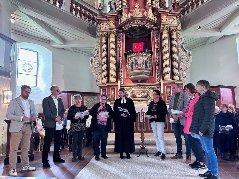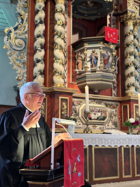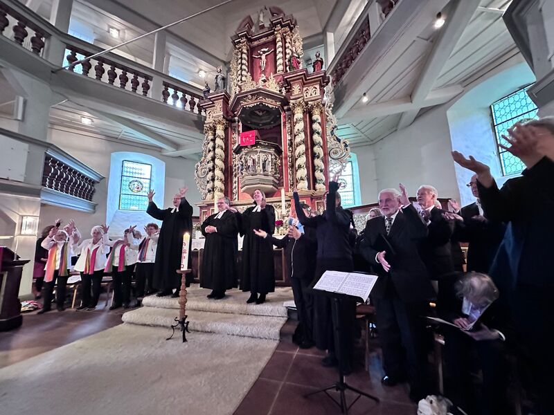 „Lasst uns das gemeinsam tun!“ – unter dieser Überschrift stand der feierliche Gründungsgottesdienst der Evangelisch-lutherischen Gesamtkirchengemeinde Oberharz am Pfingstsonntag in der Paul-Gerhardt-Kirche in Lautenthal. Seit dem 1. Januar gehören die Ortskirchengemeinden Altenau-Schulenberg, St. Andreasberg, Bad Grund, Buntenbock, Clausthal, Lautenthal, Wildemann und Zellerfeld dazu. Was noch fehlte, war ein Gründungsfest für diese Gesamtkirchengemeinde. Und welcher Termin konnte da besser sein als Pfingsten – der Geburtstag der Kirche – um gemeinsam diese neue Gemeinde zu feiern? Viele gute Worte und Wünsche gaben sich die Vertreter der acht Ortskirchengemeinden zu Beginn gegenseitig mit auf den Weg und beschrieben die Schätze des anderen: Lautenthal habe zum Beispiel noch eine Bücherei, Buntenbock sei nun eine „richtige“ Ortskirchengemeinde, Wildemann habe einen Kochkreis, Clausthal die große blaue Kirche Zum Heiligen Geist, die Zellerfelder Kirche biete richtig viel Platz, um schöne Gottesdienste wie das Format 18mal6 zu feiern, in Bad Grund kann man am Reformationstag „Futtern wie bei Luthern“, St. Andreasberg sei bekannt für viele besondere Veranstaltungen und Altenau-Schulenberg habe mit der Gründung des Fördervereins für die Kapelle zukunftsweisende Entscheidungen getroffen. Überall sei großer Zusammenhalt spürbar. Den lobte auch Jan von Lingen, Stellvertretender Regionalbischof des Sprengels Hildesheim-Göttingen, der als besonderer Ehrengast die Pfingstpredigt hielt. „Die Fahrt vom Flachland hierher über die Berge bei tosendem Wind war für mich schon ein kleines Abenteuer. Und nun loben Sie sich hier als Ortskirchengemeinden gegenseitig über allen Maßen – dann muss Pfingsten sein!“ Nach ehrlichen Worten, welche Arbeit und Herausforderung ein solcher Zusammenschluss von Gemeinden eben auch mit sich bringt, schloss Jan von Lingen: „Glaube, Hoffnung, Liebe – wenn die in uns brennen, dann entzünden wir ein Leuchtfeuer. Unsere Aufgabe ist es, dieses Feuer zu hüten. Dieses neue Gemeinschaftsfeuer der Christenheit im Oberharz leuchtet über die Berge hinaus!“ Musikalisch unterhielten an diesem Nachmittag die Ökumenische Kantorei Clausthal, der Kirchenchor Lautenthal und Martin Hofmann an der Orgel. Zusammen wurde auch das Lied "Lasst uns miteinander…" gesungen, alle Gäste konnten sich neben dem Signet der Gesamtkirchengemeinde Oberharz mit ihrer Unterschrift verewigen und es erwartete sie noch eine ganz besondere Überraschung. Denn zunächst kamen die Ortskirchenvorstände aus unterschiedlichen Richtungen auf „die Bühne“ des Altars und reichten sich die Hände. Dann konnten sich die Gottesdienstbesucher anschließen und bildeten einen großen Kreis um die Sitzreihen – Hand in Hand. Jan von Lingen sprach allen den Segen zu und gemeinsam wurde harztypisch nach der Melodie des Steigerliedes gesungen: „Glück auf, Glück auf, die Kirche lebt!“ Im umgetexteten Lied hieß es: Mutig, stark und beherzt soll sie sein, soll sie sein. Mutig, stark und beherzt wird sie sein, wird sie sein.“ Nun, der Anfang ist schon lange gemacht: Mit einem gemeinsamen Kirchenbüro, einem gemeinsamen Gemeindebrief, gemeinsamen Pastor*innen, einem gemeinsamen Gottesdienstplan und vielem mehr. Und wenn nun noch die Heilige Geistkraft dazukommt… Oder wie es Thomas Gundermann als ehrenamtlicher Bürgermeister der Berg- und Universitätsstadt formulierte: „Unsere Gesamtkirchengemeinde Oberharz ist eine Chance nach innen und nach außen: Kirchliches Leben empfängt aus einer scheinbaren Notsituation neue Impulse, wie wir bei der ökumenischen Osternacht erfahren durften, und die politische Gemeinde beherbergt einen Schatz, der unsere Region als attraktiv und anziehend beweist – und ätzende Medienberichte über den Harz Lügen straft.“ Zum Abschluss wurde bei guten Gesprächen, Kaffee und Kuchen noch miteinander gefeiert.