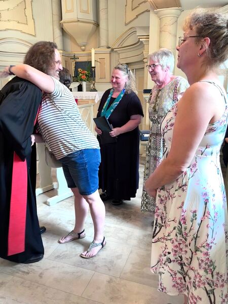 Pastor Torsten Kahle hat am Sonntag in einem feierlichen Gottesdienst den Staffelstab an seine Kollegen weitergegeben. Der Pastor für die Kirchengemeinden Barbis, Osterhagen und Bartolfelde, kurz BOB, wurde von Uwe Brinkmann, dem stellvertretenden Superintendenten, aus dem Kirchenkreis Harzer Land verabschiedet. Gut sieben Jahre lang war er dort tätig, verlässt die Region zusammen mit seiner Frau und tritt Mitte Juli seine neue Stelle als Gemeindepastor für Rehburg an. In seiner Predigt ging Torsten Kahle auf das 4. Kapitel des Philipperbriefes ein. Darin beschreibt Paulus, was er alles mit seiner Gemeinde erlebte und wie sich der Glaube in der Gemeinde ausbreitete. Ähnlich wie in Barbis, Bartolfelde und Osterhagen. In seiner Zeit habe sich aus dem ehemaligen Kirchenchor Barbis und der Kantorei Bartolfelde/Osterhagen die neue Kantorei BOB gegründet, die natürlich auch während des Gottesdienstes musizierte. Außerdem habe er die beliebte Sommergottesdienst-Reihe ins Leben gerufen und es sei ihm eine besondere Freude gewesen, zahlreiche Kinder zu taufen und einige Tauffeste zu feiern. Auch die Corona-Zeit mit allen Einschränkungen fiel in seine Amtszeit, in der alle zusammen neue Wege suchten und fanden. „Es gab Andachten und Impulse auf Video – mit teilweise mehr Besuchern auf der Seite, als sonst im Gottesdienst sitzen“, blickte der 48-Jährige zurück. So sei es ihm ein besonderes Anliegen gewesen, Beziehungen aufzubauen und zu pflegen – und für den Glauben zu begeistern, wie zum Beispiel bei den Andachten in den evangelischen Kitas, die nun erstmal Vanessa Bethe und Urs Ebenauer übernehmen. „Überall dort ist der Geist Gottes spürbar“, schloss Kahle, bevor er von Uwe Brinkmann aus seinem Dienst entpflichtet wurde. Dieser gab ihm die besten Wünsche auf den Weg und noch einige Anekdoten preis: „Legendär war wohl die Anwerbung von Kirchenvorständen beim Osterfeuer – die Story hat uns alle erreicht“, sagte er lachend und zählte viele Beispiele für Kahles Wirken auf. „Ein ganz herzliches Dankeschön an Sie und Ihre Frau – mögen Sie in Rehburg ein schönes neues Zuhause finden“, schloss Brinkmann, bevor sich die BOB-Kirchenvorstände in einem amüsanten Reimlied von Torsten Kahle verabschieden, seine Kolleg*innen ein Präsent übergaben und auch Bad Lauterbergs Bürgermeister Rolf Lange dem Pastor für sein Wirken dankte.