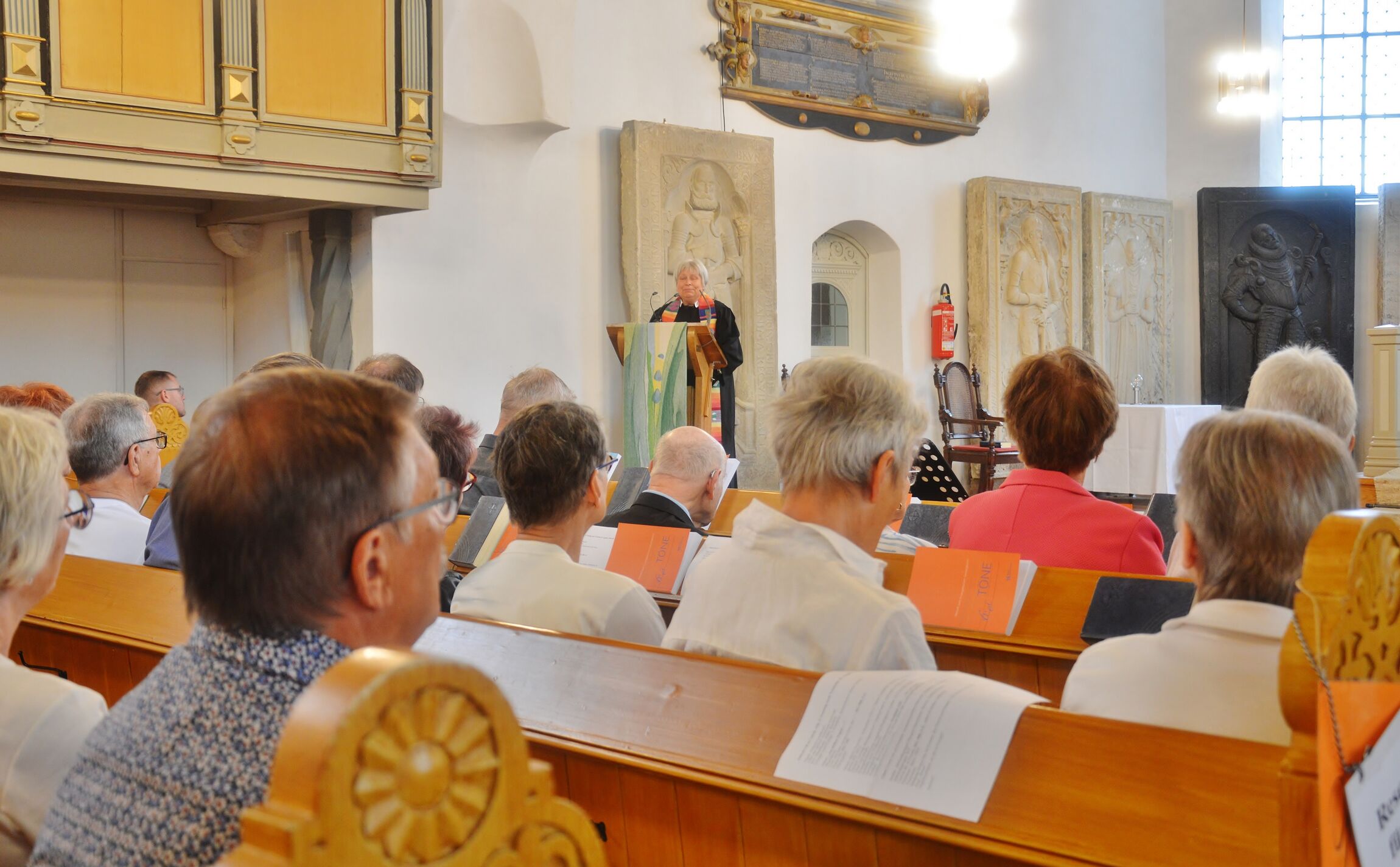 „Ich glaube, diese Welt müsste groß genug, weit genug, reich genug für uns alle sein“, sang der Chor des MTGV Eintracht beim ersten Sommergottesdienst am vergangenen Sonntag in der Marktkirche in Osterode die Zeilen von Udo Jürgens. „Gottes Güte reicht für uns alle“, griff auch Pastorin Johanna Friedlein diesen Gedanken auf, es müsse kein „Wir“ und „die anderen“ geben.
