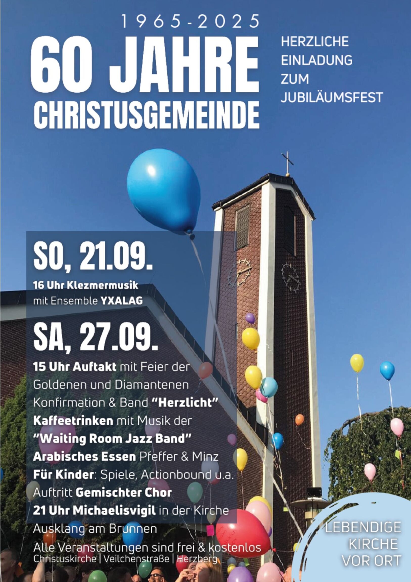 Konzert am 21.9. und Gemeindefest am 27.9. zu 60 Jahre Christusgemeinde Herzberg