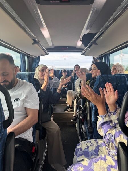 Ihre Arbeit geht „über Büromentalität hinaus“, betonen die beiden Mitarbeiterinnen des Diakonischen Werks. Das muss in der Integrationsarbeit und generell in der Arbeit mit Menschen auch sein. Mal keine Papiere, mal kein Stress, sondern gemeinsam Spaß haben. Und ja, den hatten die Familien aus verschiedenen Nationen, darunter viele Kinder, auf jeden Fall. Es begann schon bei der Anreise per Bus, während der sich alle als Gruppe zusammenfanden.