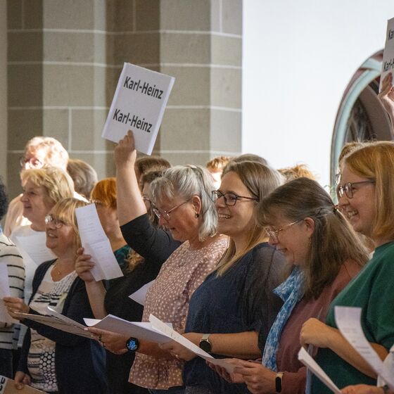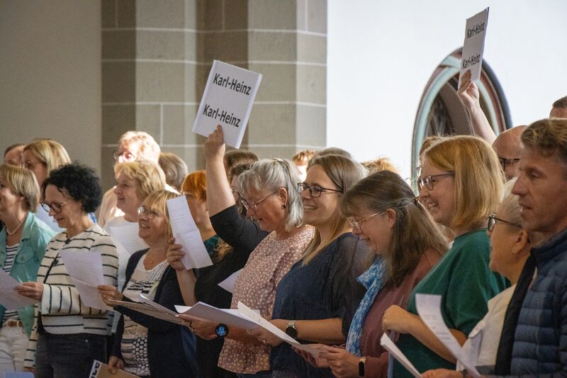 Rund 200 Weggefährtinnen und Weggefährten, unter ihnen Vertreter von Behörden, der Stadt und der Landeskirche, verabschiedeten sich in der St.-Sixti-Kirche. Von den Kirchenkreisen erhielt Himstedt einen bunten Präsentkorb mit Spezialitäten aus der Region. Im Anschluss an die kirchliche Entpflichtung übernahm der stellvertretende Amtsleiter Peter Slawik kurzzeitig die Moderation. Mitarbeitende sorgten mit einem musikalischen Beitrag für Heiterkeit: Mit Schildern, auf denen „Karl-Heinz“ und „Alles geht vorbei“ stand, sangen sie eine umgedichtete Version von „Marmor, Stein und Eisen bricht“. Für besondere Heiterkeit sorgte die Liedzeile „Paragrafen irren sich, aber Karl-Heinz Himstedt nicht!“.