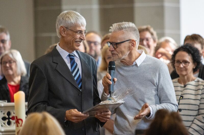 Auf dem Kirchplatz bildete sich zum Abschluss eine lange Schlange von Gratulantinnen und Gratulanten, die ihm persönlich danken wollten. Das Kirchenamt wird nun kommissarisch von den stellvertretenden Amtsleitenden Peter Slawik und Christa Eulert geführt.